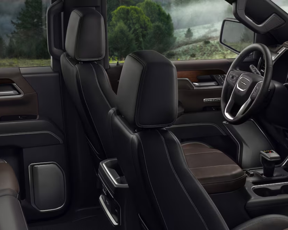 Step inside and you’ll instantly notice the Sierra’s attention to comfort. From the Elevation’s sporty Jet Black interior to the Denali Ultimate’s full-grain leather seats with massage function, every trim brings something distinct. Crew Cab models offer generous head and legroom, while thoughtful storage design means you’ll never run out of space for your gear. Heated and ventilated seats, premium materials, and a 12-speaker Bose sound system make every trip feel first-class.